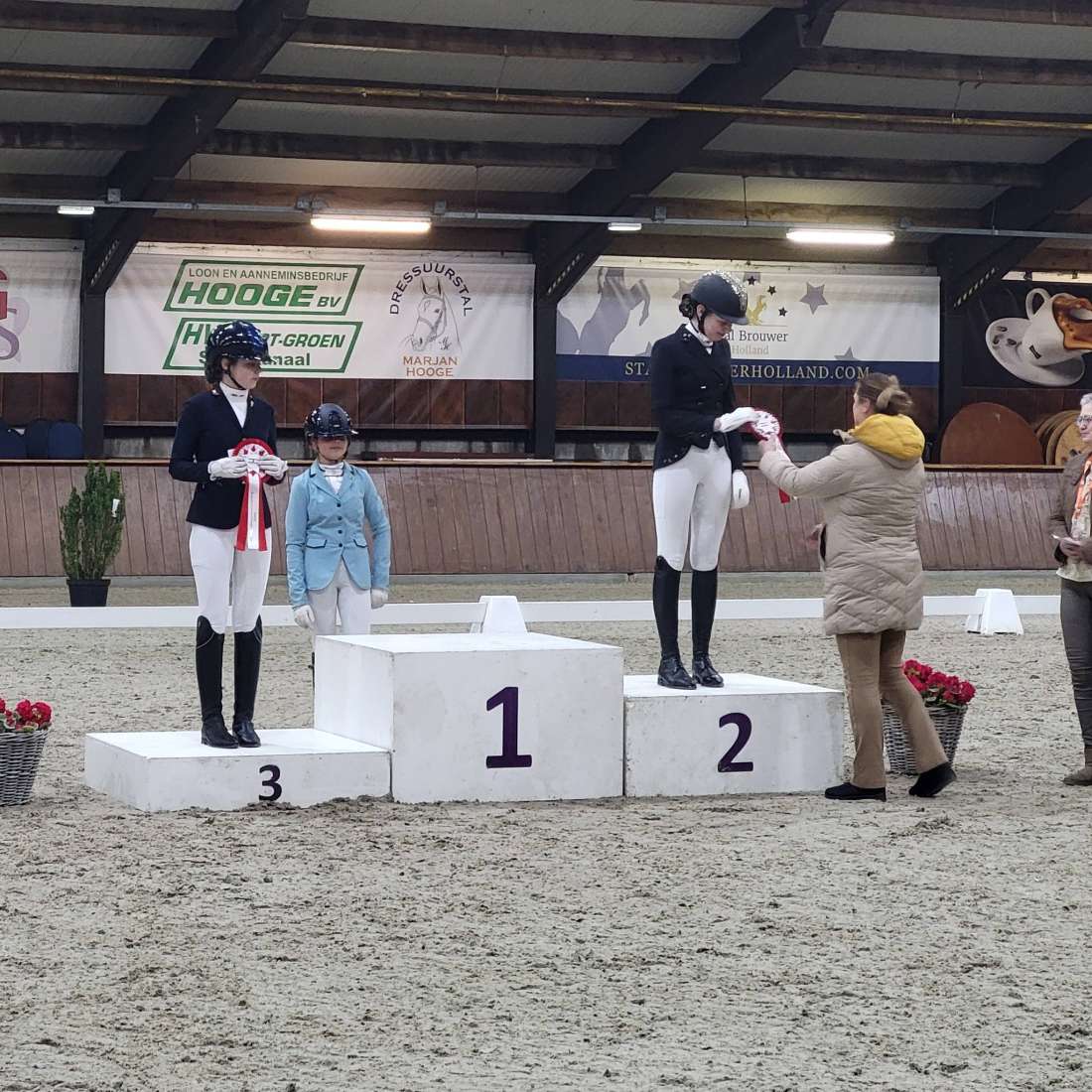 Een dag later, op vrijdag 6 februari, liet Carlijn Deddens zich van haar beste kant zien en werd zij reservekampioen in de klasse M1 pony’s met een mooie score van 65,556%. 🏆